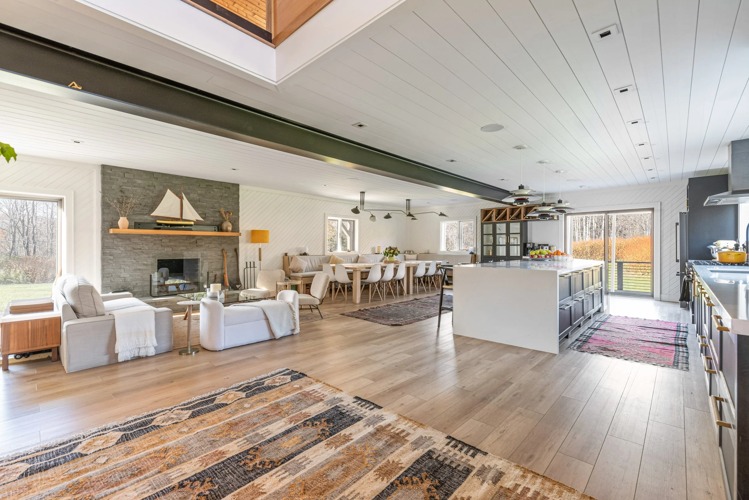 Perched majestically in the rolling mountains of Upstate New York, this contemporary modern house embodies the perfect fusion of cutting-edge design and rugged natural beauty. Surrounded by breathtaking vistas and serene woodlands, the residence offers a unique sanctuary where modern sophistication meets the tranquil charm of the mountainous landscape.